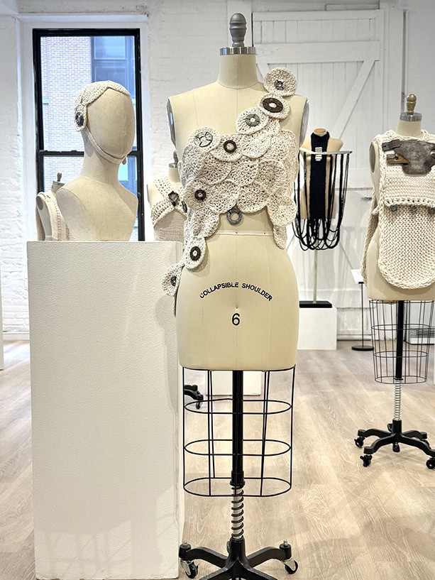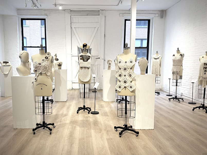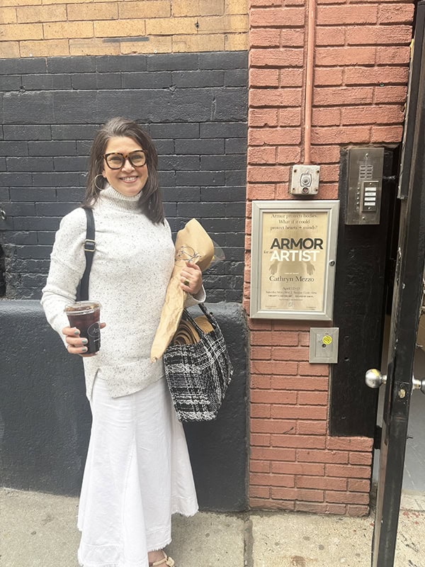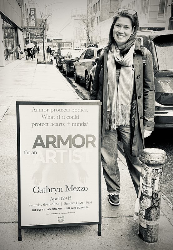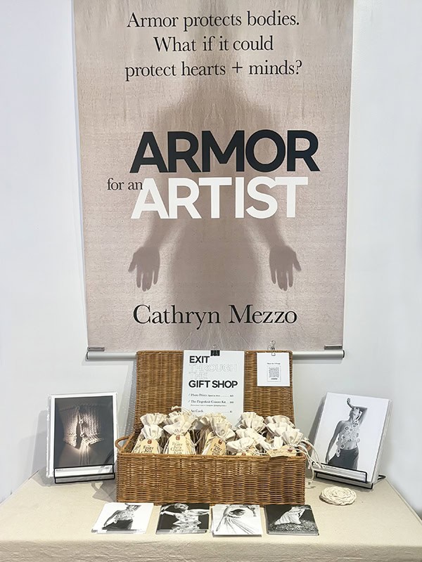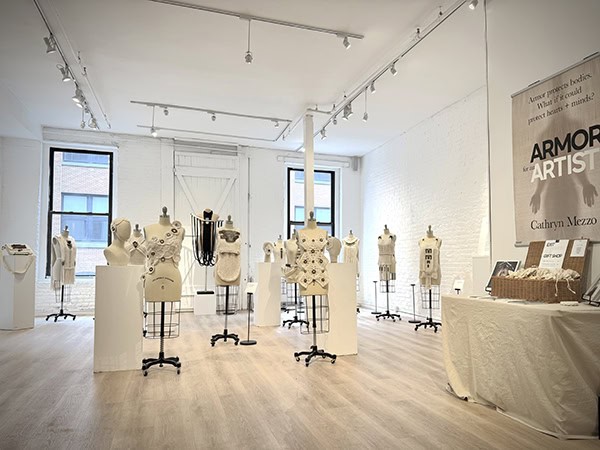 The Armor for an Artist exhibit debuted at The Loft by AGI Fine Art in New York City on April 12, 2025. The collection included 12 pieces of armor, 4 helmets, and 1 mask created from cotton and found metal. Included in the exhibit was a video (show below) created by Cathryn Mezzo in which the armor is shown in movement on the human form (performed by the dancer, Gisele Luiz).